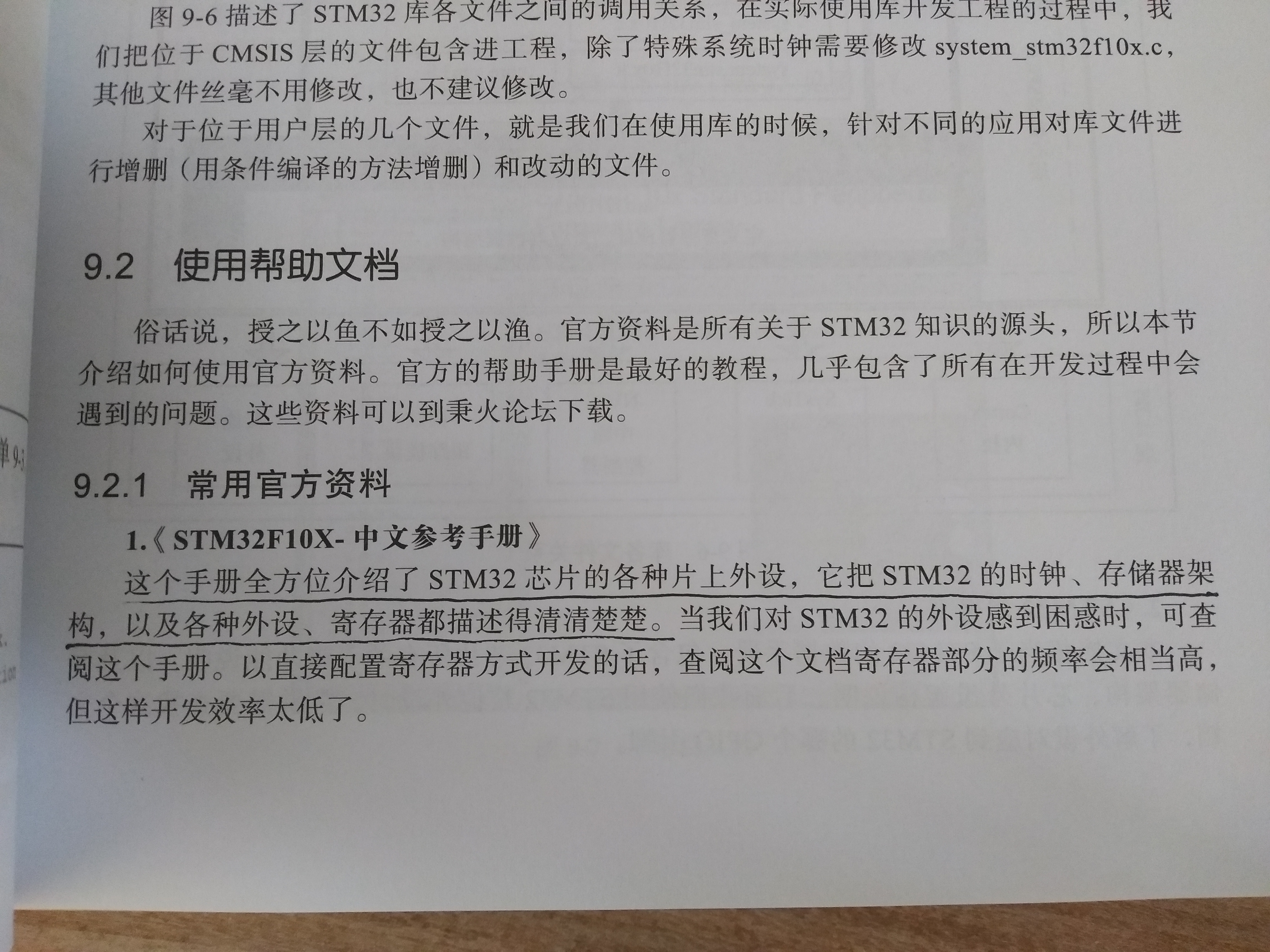 总结一下最重要的两个文档是,野火和原子的STM32书都说根据参考这两本书来。 《STM32中文参考手册》 《ARM cortex-M3权威指南》 下面拍自野火的《STM32库开发实战指南》 下面拍自原子的《原子教你玩STM32库函数版》