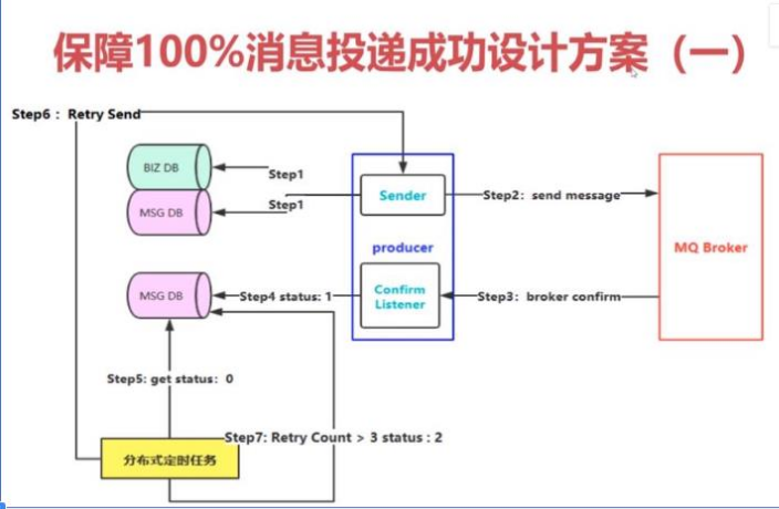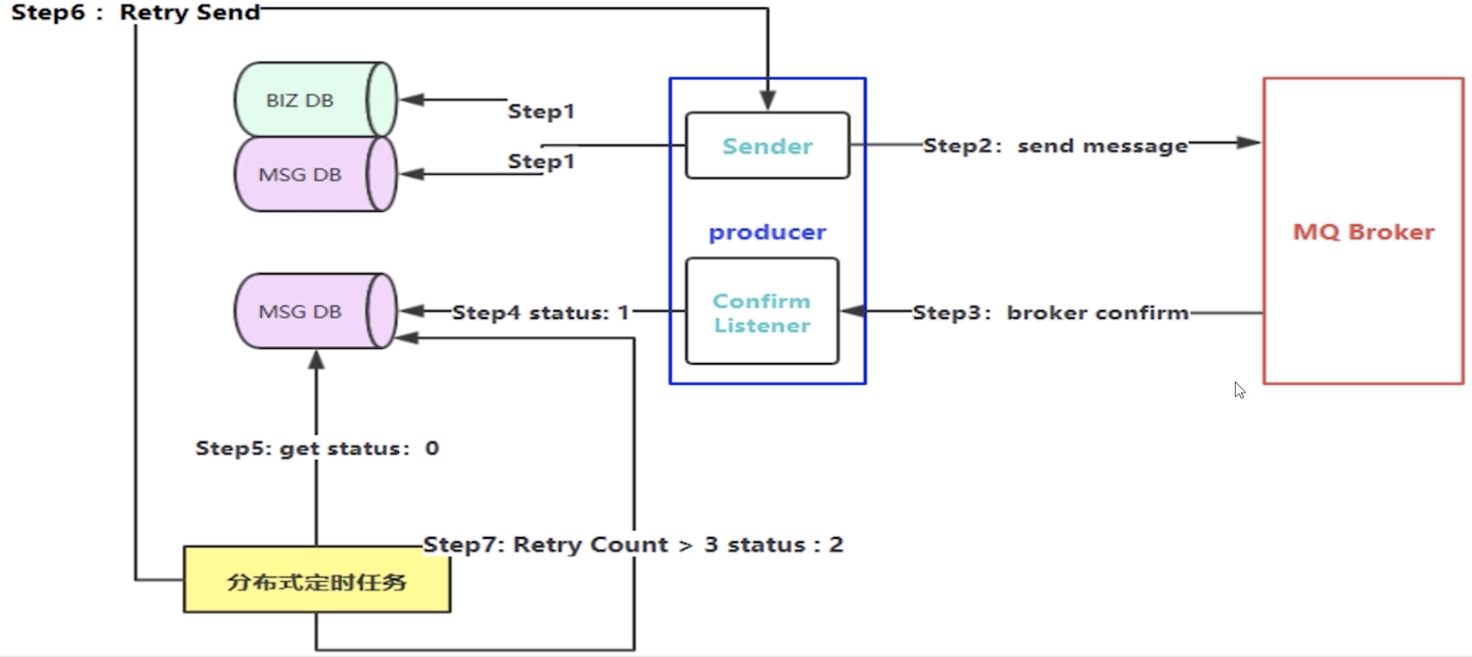文章目录 什么是生产端的可靠性投递 生产端可靠性投递的解决方案: 什么是生产端的可靠性投递 生产端要做到可靠性投递,需要以下几点: 保障消息的成功发出 保障MQ节点的成功接收 发送端收到MQ节点(Broker)的确认应答 完善消息的补偿机制:也就是上面三个步骤失败了的补偿机制。 生产端可靠性投递的解决方案: 消息落库,对消息状态进行打标 在消息发送的时候,把消息持久化到数据库中,然后消息有个状态:...