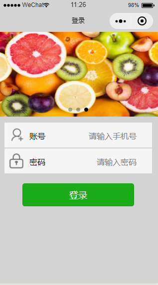 效果: 新加页面,app.json中新添一个login文件夹 login.wxml <view class='allcon'> <view> <swiper style="height:400rpx" indicator-dots="{{true}}" autoplay="{{true}}&qu...