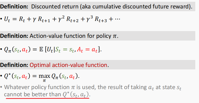 回顾一下action-value函数: Value-Based是指: 但是一般来说,这个Q*我们是无从得出的,因此提出使用卷积网络来近似: Deep Q-Network (DQN) Approximate the Q Function Deep Q Network (DQN) Apply DQN to Play Game Temporal Difference (TD) Learning 一个小