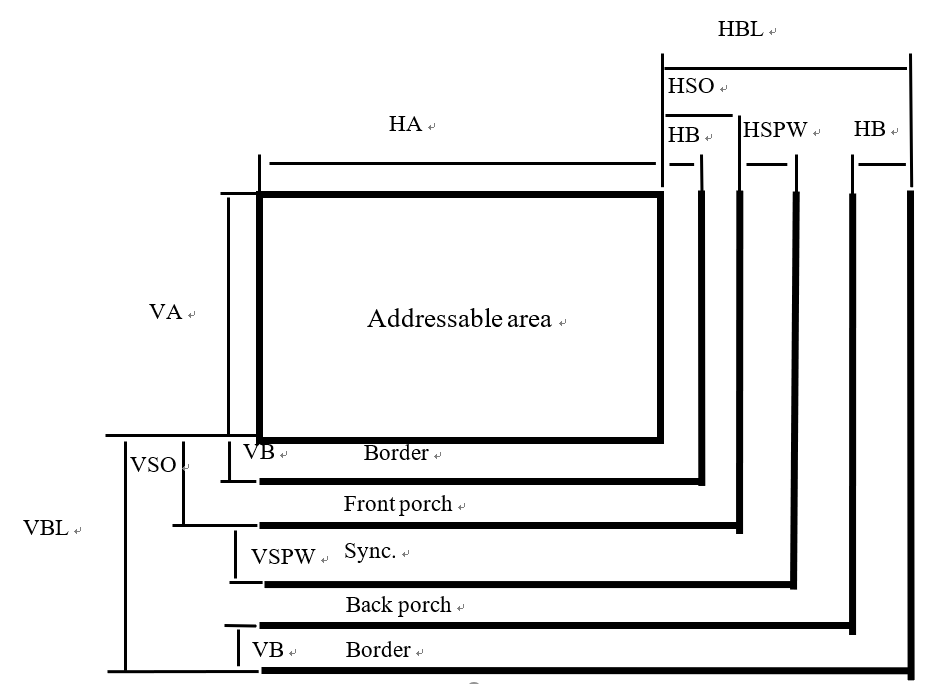 这18个被分成两个Part,Part 1里面包括了视频时序的一些非常详细的参数,每一个参数的含义参考下列视频时序图: