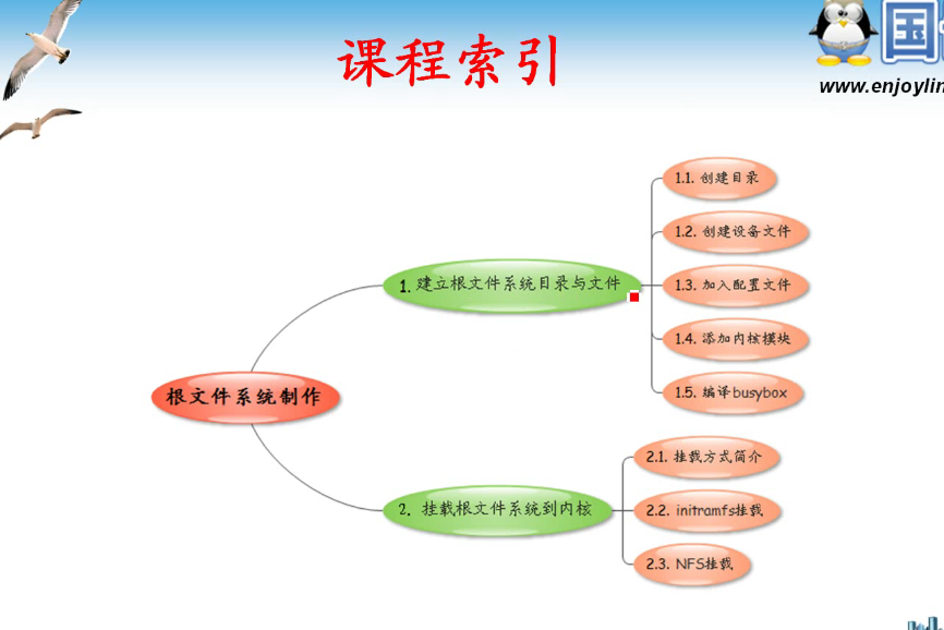 什么是文件系统:目录目录里的文件, 把目录加载到linux内核的方式 一.建立根文件系统目录与文件 1.1创建目录 (1)在linux中创建根目录,并在根目录下创建好需要的一些子目录 如:etc,bin目录等。 1.2创建设备文件 什么叫设备文件:很多设备在linux中都是文件形式...