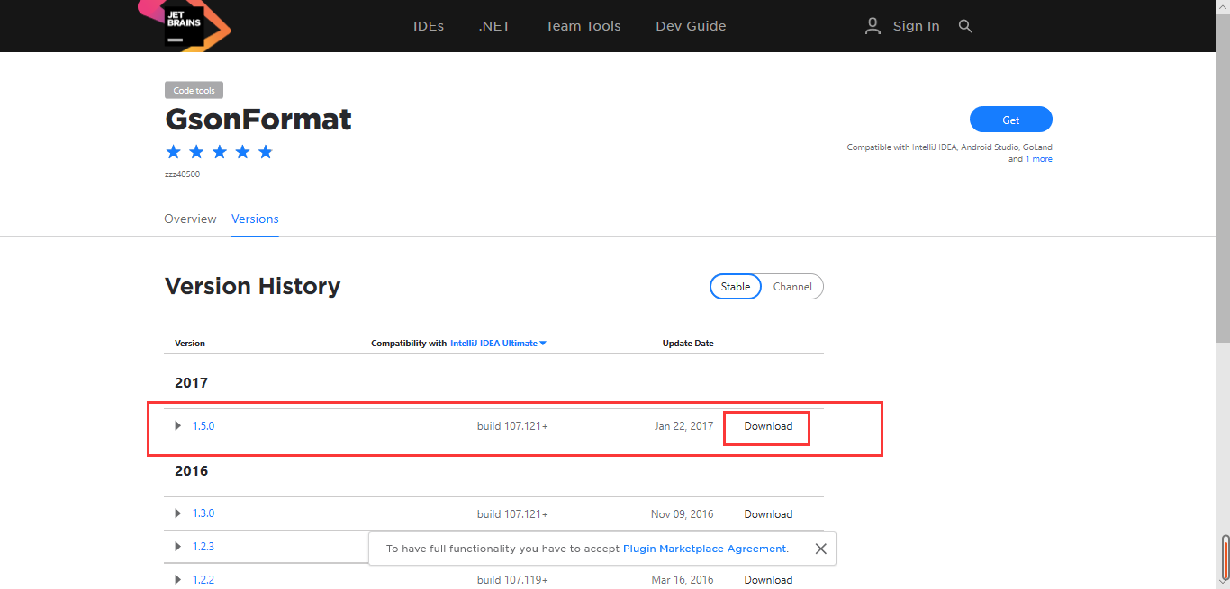 今天需要用到gsonformat,跟着网上的教程来,但是发现自己的Android studio中搜索不到gsonformat插件,于是就自己从官网上下了一个gsonformat配置到AS中,以下是步骤: 1、 下载插件 下载地址:link. 此处我选了1.5.0版本的进行下载: 下载完成: 2、 安装到AS中 file-settings-plugins-installed 此时选择边上的设置图标进...