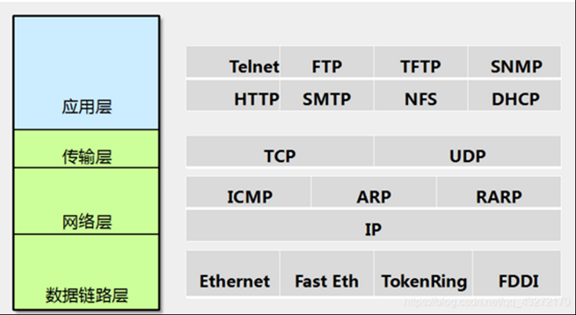1. 概念 应用层,在集成的是7层模型中的表示层,会话层,应用层的总和,在TCP/IP三层模型中的最高层,其实现的协议包括TFTP,HTTP,SNMP,FTP,SMTP,DNS,Telnet等 作用: 每个应用层协议都是为了解决某一类应用问题,而问题的解决是通过位于不同主机中的多个应用进程之间的通信和协同工作来完成的。应用层的具体内容就是规定应用进程在通信时所遵循的协议。 2 . 层...