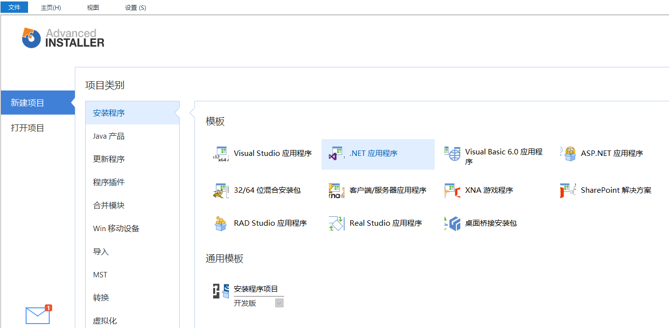 接上一篇博文C#程序打包工具安装 后,制作程序包。这里以生成.NET的程序为例子。 双击打开Advanced Installer 15.7工具,汉化之后的界面是这样的: 然后,选择选中的.NET应用程序,会出现如下的弹窗: 输入程序名和公司名。点击下一步。 下一步出来的弹窗是选择分发类型,一般选择exe程序: 继续下一步。选择项目的安装输出目录: 继续下一步,选择需要打包的文件: 继续下一步,这里...