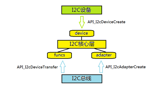 I2C适配器的软件实现,提供I2C适配器与从设备间完成数据通信的能力。 I2C总线驱动由i2c_adapter和i2c_funcs来描述。 包含初始化I2C总线,操作函数集(总线传输Transfer函数...组成,即I2C总线驱动、I2C核心层和I2C设备驱动。I2C核心层是I2C驱动和I2C设备驱动的中间枢纽,它以通用的、与平台无关的接口实现了I2C驱动中设备与适配器的沟通(已经存在,包含