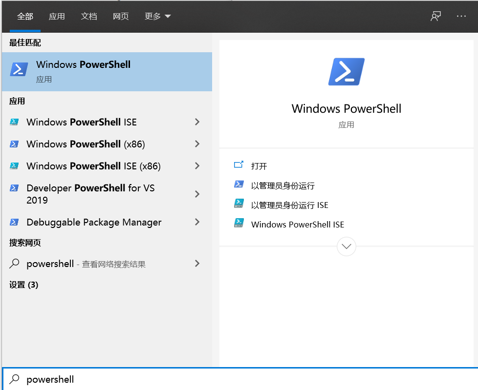 yarn:无法加载文件xxxx,因为在此系统上禁止运行脚本 刚开始学习vue,在启动运行时出现的错误(win10系统) 解决办法: 1、win键 + s 搜索 powershell 并以管理员身份运行: 2、点开后输入set-ExecutionPolicy RemoteSigned,在执行策略更改处输入y 3、输入 get-ExecutionPolicy 显示出 RemoteSigned就