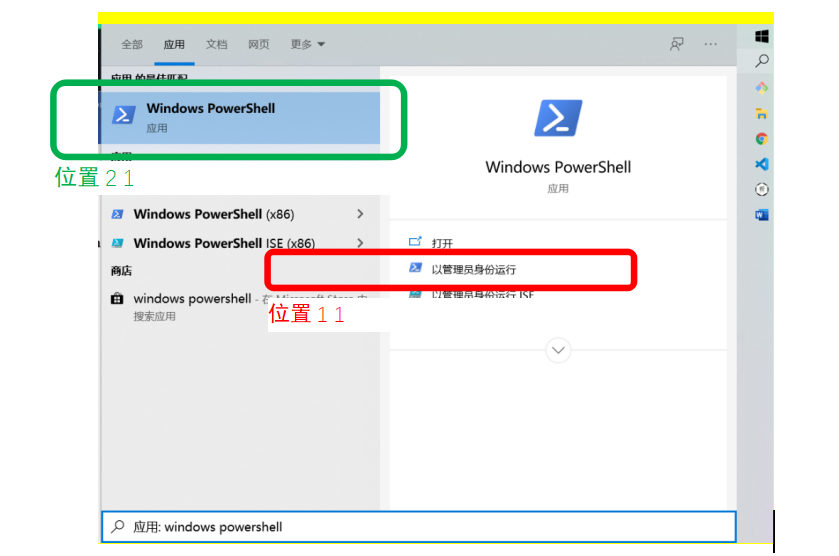 报错 — vue :无法加载文件 C:…,因为在此系统禁止运行脚本。有关详细信息,请… 解决 — 以管理员身份打开Windows PowerShell(执行方式如下图)执行命令:set-ExecutionPolicy RemoteSigned 1)在win10自带搜索框中搜索Windows PowerShell 2)点击图中以管理员身份运行