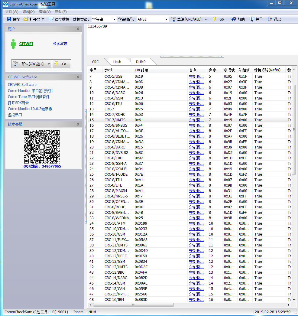 CommCheckSum校验工具是一款通用的循环冗余校验码CRC(Cyclic Redundancy Check)、MD5、SHA1、SHA2、SHA3、HAVAL、SHAKE、TIGER、BLAKE、RIPEMD、GOST等算法Hash校验的专业工具软件。 CRC校验支持:CRC3、CRC4、CRC5、CRC6、CRC7、CRC8、CRC11、CRC12、CRC13、CRC14、CRC