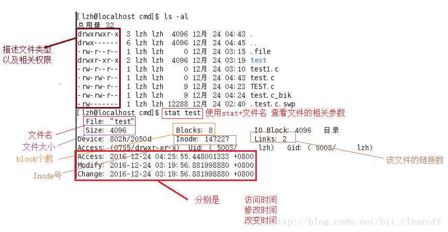在Linux下,一个文件也有三种时间,分别是:访问时间、修改时间、状态时间 如果刚刚创建一个文件,毋庸置疑它的三个时间是都等于创建时间的,就像刚才创建的test文件,我们看到它的三个时间是相等的。那么在linux上这三个时间分别代表着什么,随着什么而改变: (1)访问时间:对文件进行一次读操作,它的访问时间就会改变。例如像:cat、more等操作,但是像之前的state还有ls命令对atime是不...