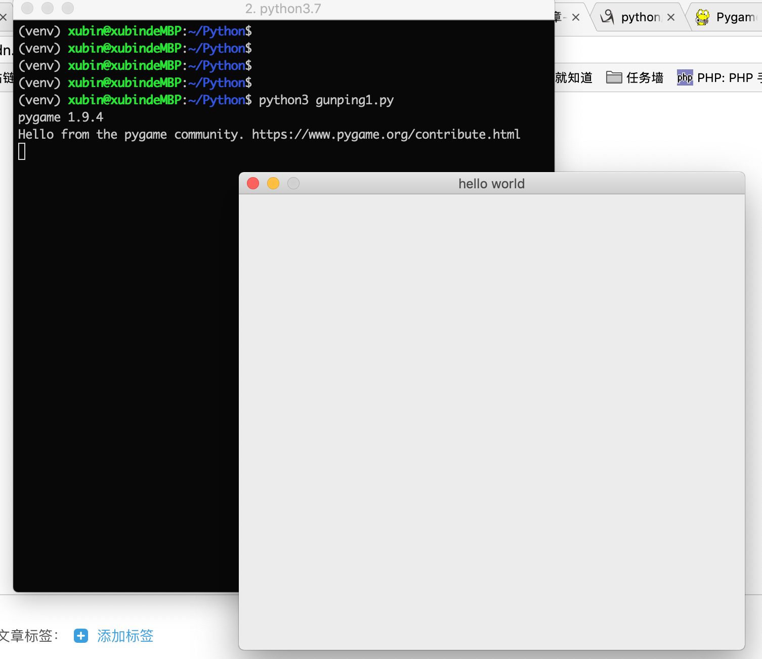 安装homedrew 打开终端, 执行命令: /usr/bin/ruby -e “$(curl -fsSL https://raw.githubusercontent.com/Homebrew/install/master/install)” 安装pygame依赖: brew install hg sdl sdl_image sdl_ttf 安装pip - sudo