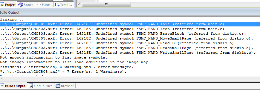 ,没有发现问题。又检查了头文件是否包含,文件路径是否添加,都没有发现问题。 最后我发现自己没有把文件添加到工程项目中。在MDK keil这个IDE中,单击击view->Project...源文件添加进入,如图,编译错误提示“没有定义的标识符(也就是函数实体)”,都这这个源文件中,因为没有添加到工程中,所以只有头文件的话,只有原型,而没有实体。 这样就解决了编译出错的