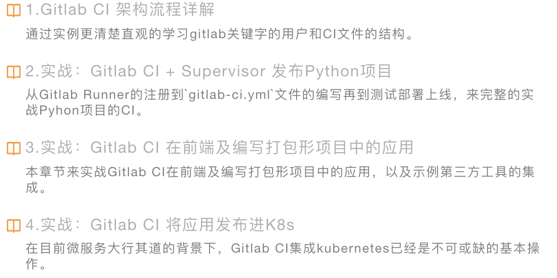 /虚拟机/云服务器等,第三篇需要读者具备一定的K8s知识,相信在不久的将来,微服务大行其道,第三篇定能祝你一臂之力。 ✔打破运维开发壁垒 ✔教你用Gitlab一键实现CI持续集成 一起学习>>...了Gitlab CI的优势,是不是有了一定的兴趣跃跃欲试,让我们来一块走进Gitlab CI得实战,一块领略如丝般顺滑的持续集成体验,通过专栏通过四个实战,可以根据自己公司特点来改进流水线,适用于发布物理