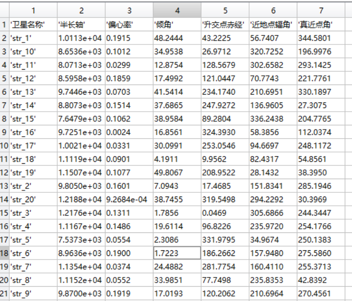 这个案例比较简单,生成20个卫星,然后获取第一个轨道历元的卫星轨道六要素数据。 约束:卫星轨道高度1000~6000km,偏心率0-0.2,轨道倾角0-50°,升交点赤经0-360,近地点辐角、真近点角不做要求。 这里重点看一下DataProviders的用法。 下面上代码: uiap = actxserver(‘STK11.application’); root ...
