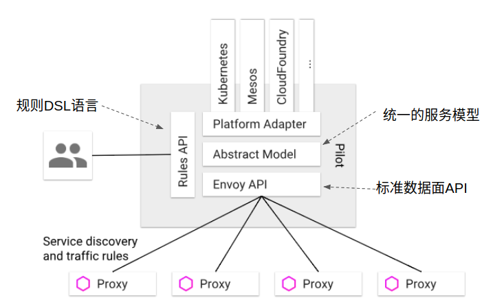 service mesh开源项目,其中最重要的功能就是对网格中微服务之间的流量进行管理,包括服务发现,请求路由和服务间的可靠通信。Istio实现了service mesh的控制面,并整合Envoy开源...服务信息和流量规则下发到数据面的sidecar中。 通过采用该标准API,Istio将控制面和数据面进行了解耦,为多种数据面sidecar实现提供了可能性。事实上基于该标准API已经实现了多种