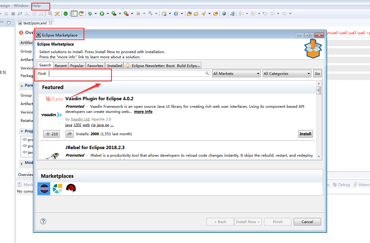 今天用eclipse安装Spring sts插件的时候遇到了一点问题,卡了一会,按理来说直接安装下面的步骤就能装好插件: 一,在Eclipse中点击Help->Eclipse Marketplace 在弹出的界面中输入STS 点击查询按钮。如下所示: 之后就是下一步,直至安装结束。 但是最后会报错误,原因是缺少很多文件。后来查阅各种资料,以及参考三位大神的博客,终于解决了问题: ...